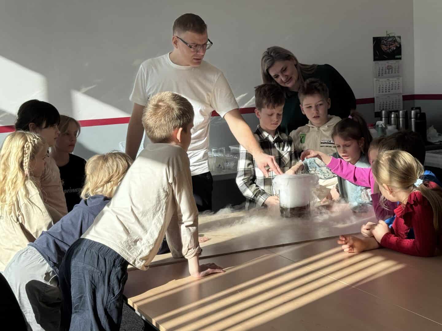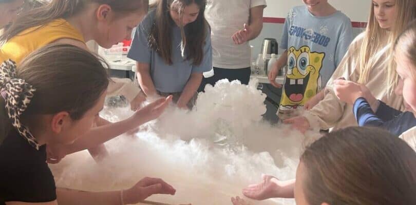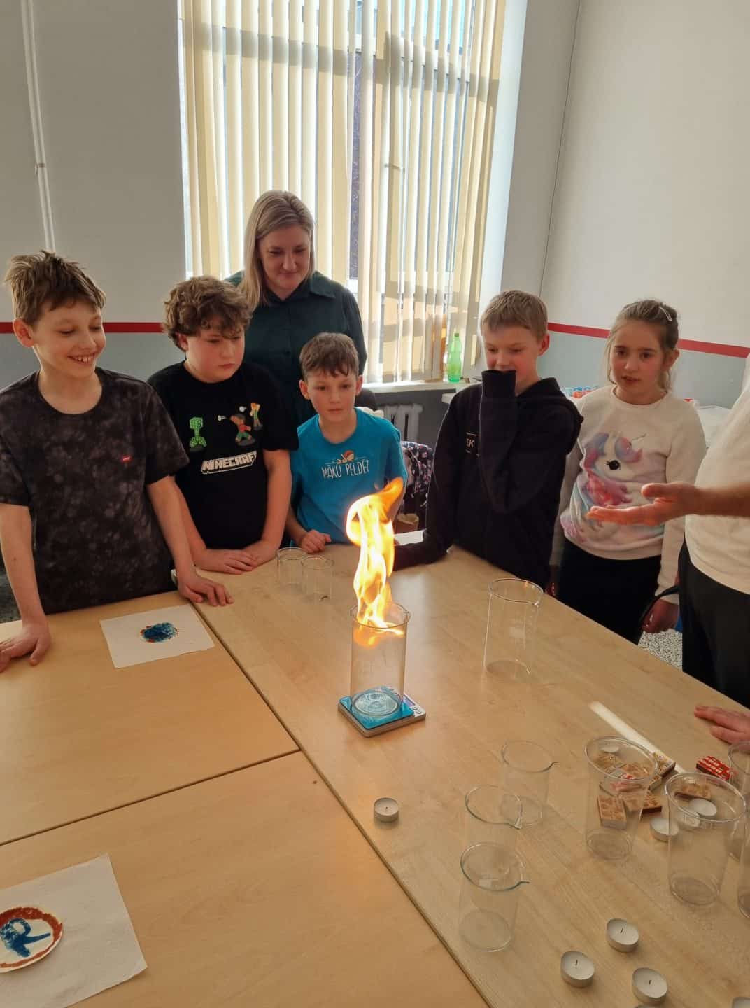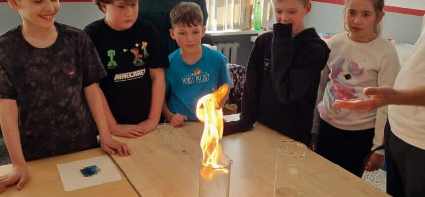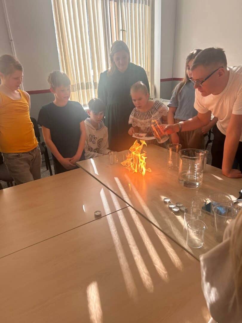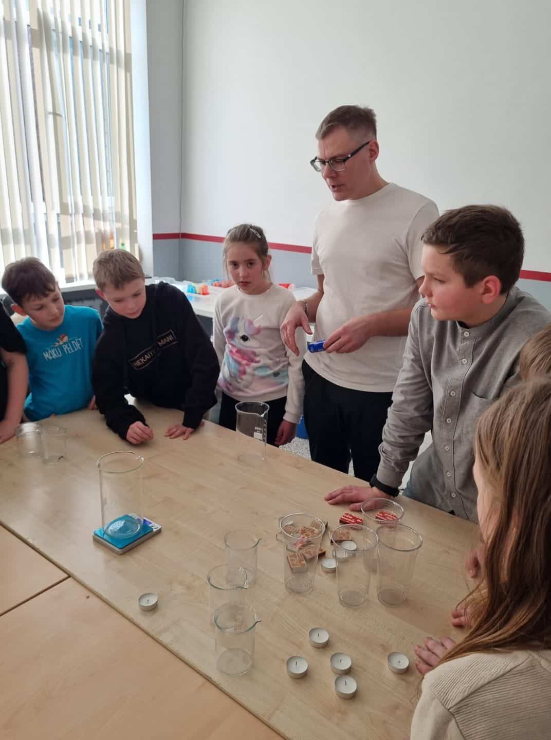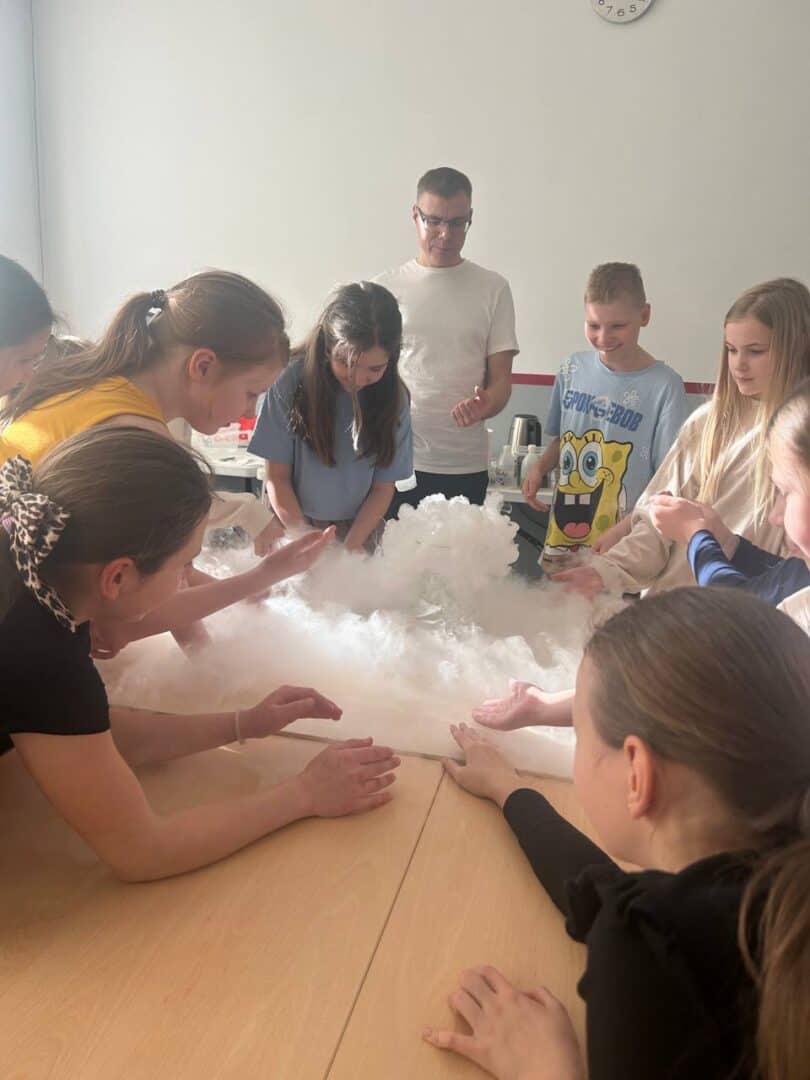 • Dabaszinību darbnīcā mūsu skolas direktors Mārtiņš demonstrēja dažādus ekspirementus un vielu pārvērtības.