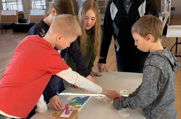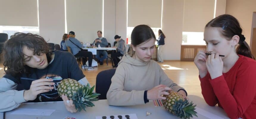 Dabaszinību stacijā skolēni atpazina dažādu Eiropas valstu ekosistēmas un tām raksturīgos augus un dzīvniekus.