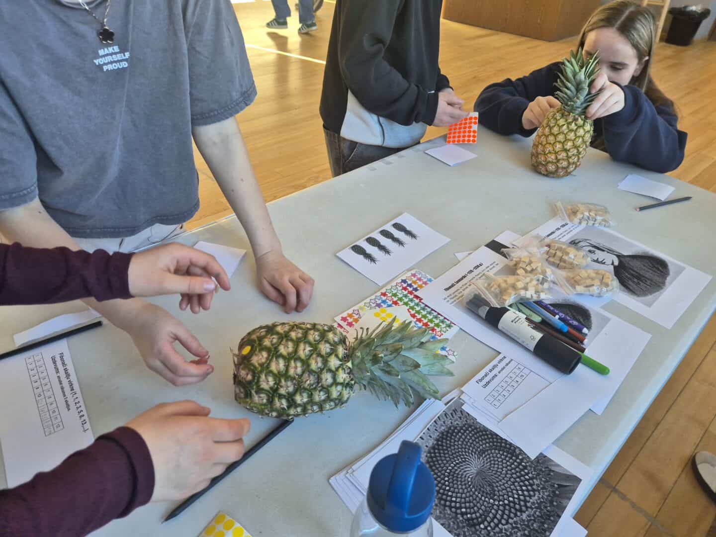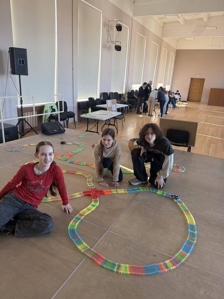 Matemātikas stacijā skolēni iepazina Fibonači spirāli, veidoja trasi automašīnām un aprēķināja to kustības ātrumu.